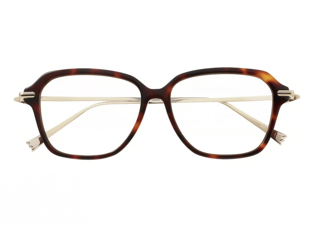 • 框身採用 光澤感的金色系鈦金屬,質感溫潤又高級