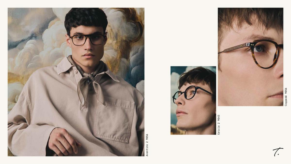 整個系列以 Talla 的 Rome 系列為基礎,再加入 Allegro、Velo、Spirito 等新款,統一置入同個視覺世界中,營造出安靜卻有力量的男士形象。每副鏡框都像在和羅馬的歷史對話:線條克制、細節雕塑,呈現一種「被時間打磨過」的男性優雅。